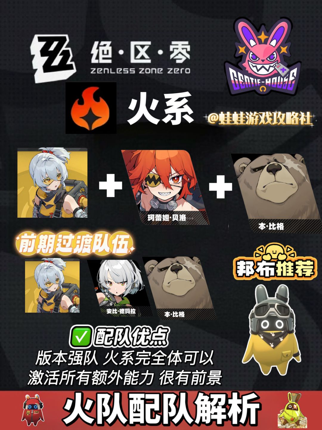前期建议抽到狼哥的直接去抽限定池子的鲨鱼妹,搭配起来几乎就是版本答案。抽到11号的就去找熊和珂蕾妲。超级好玩的火系阵容