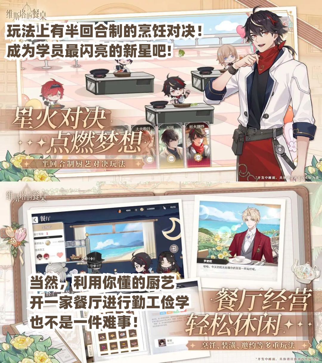 游戏也有丰富的学园生活玩法,模拟经营模式让你在可以经营自己的餐厅赚钱,也需要提高自己的能力和其他学生PK!游戏目前已经有版本可以预约啦!期待能够早日上线!!!
