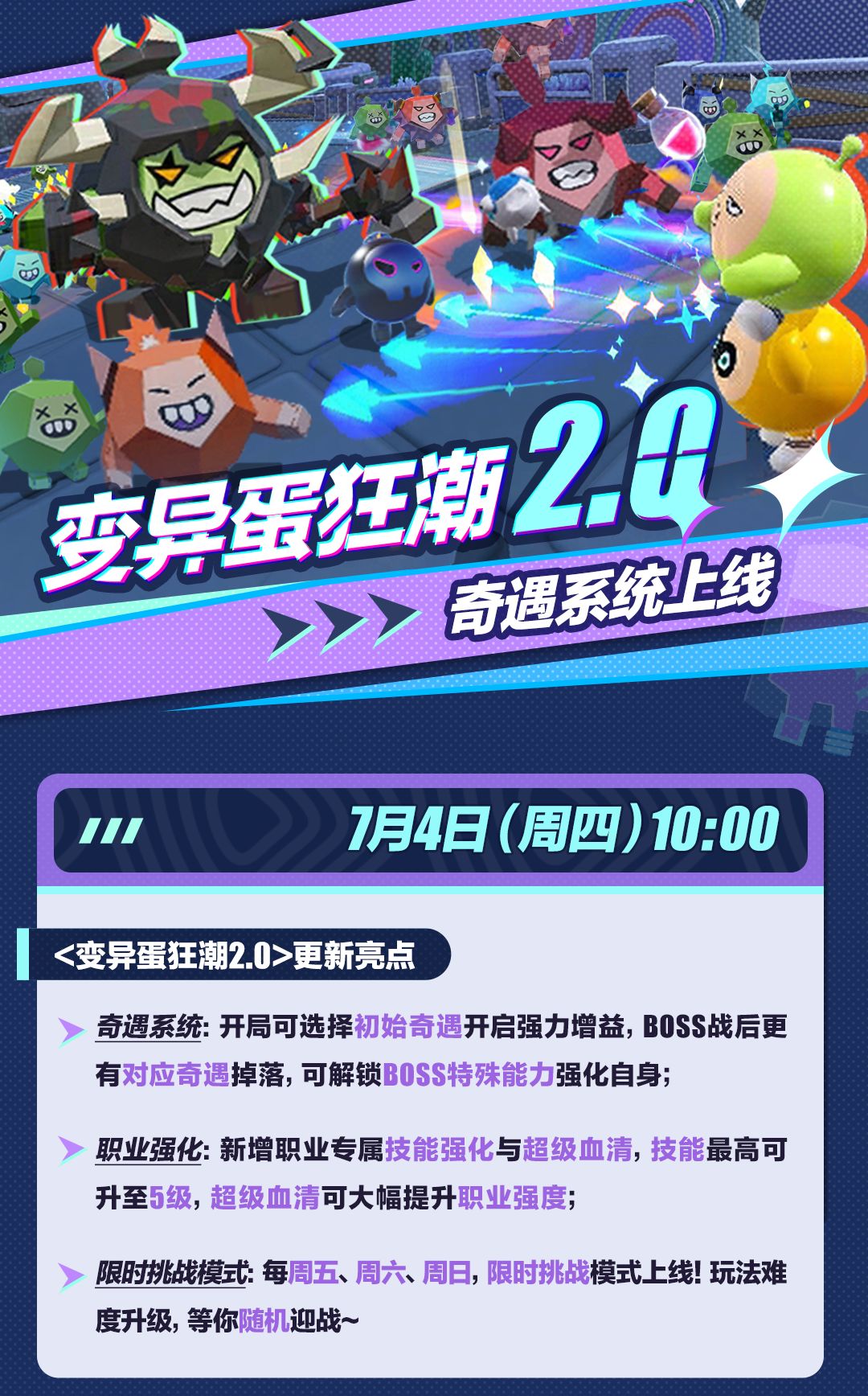 【变异蛋狂潮2.0】<奇遇系统>解锁强力增益,<限时挑战模式>开启