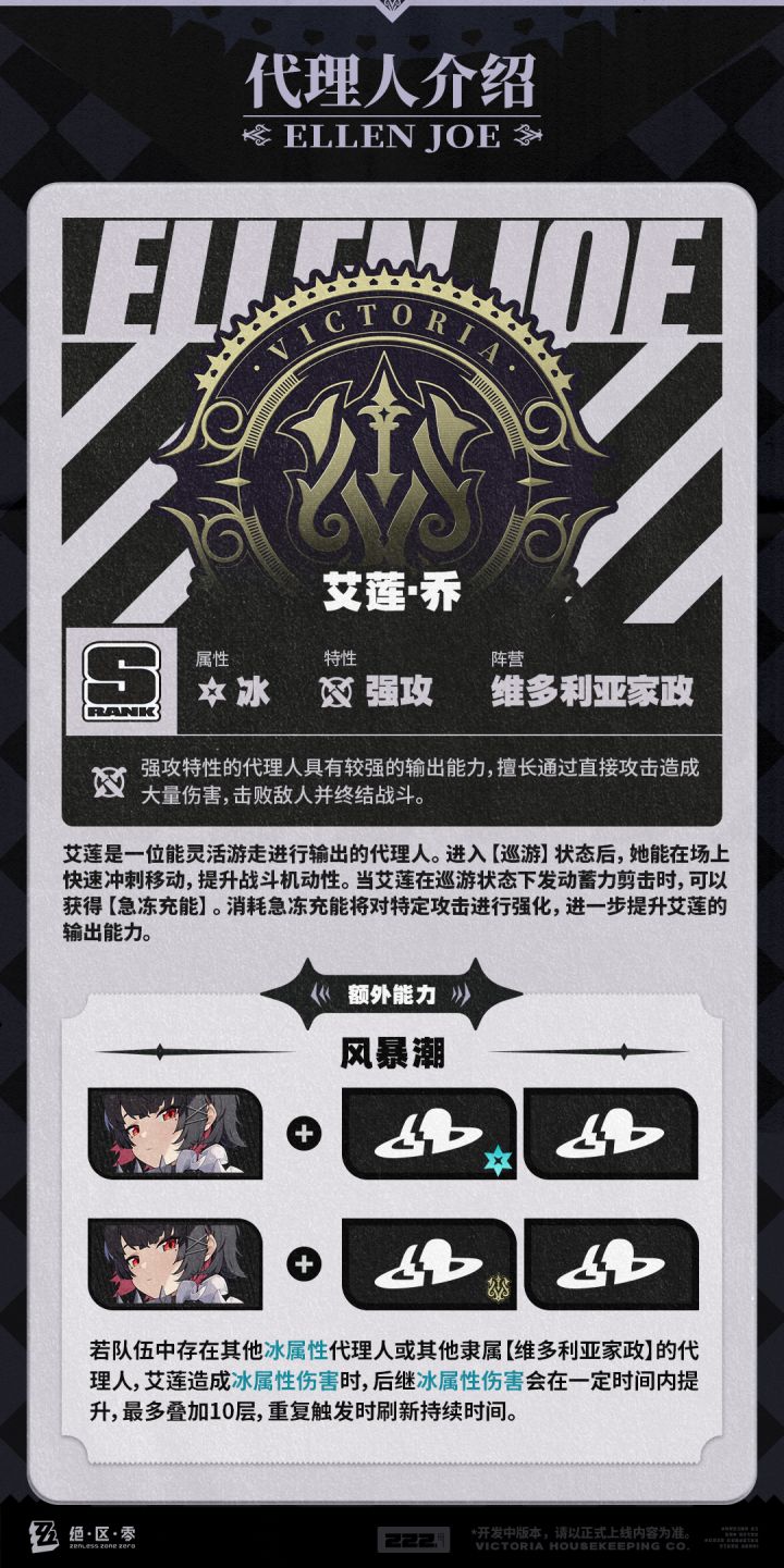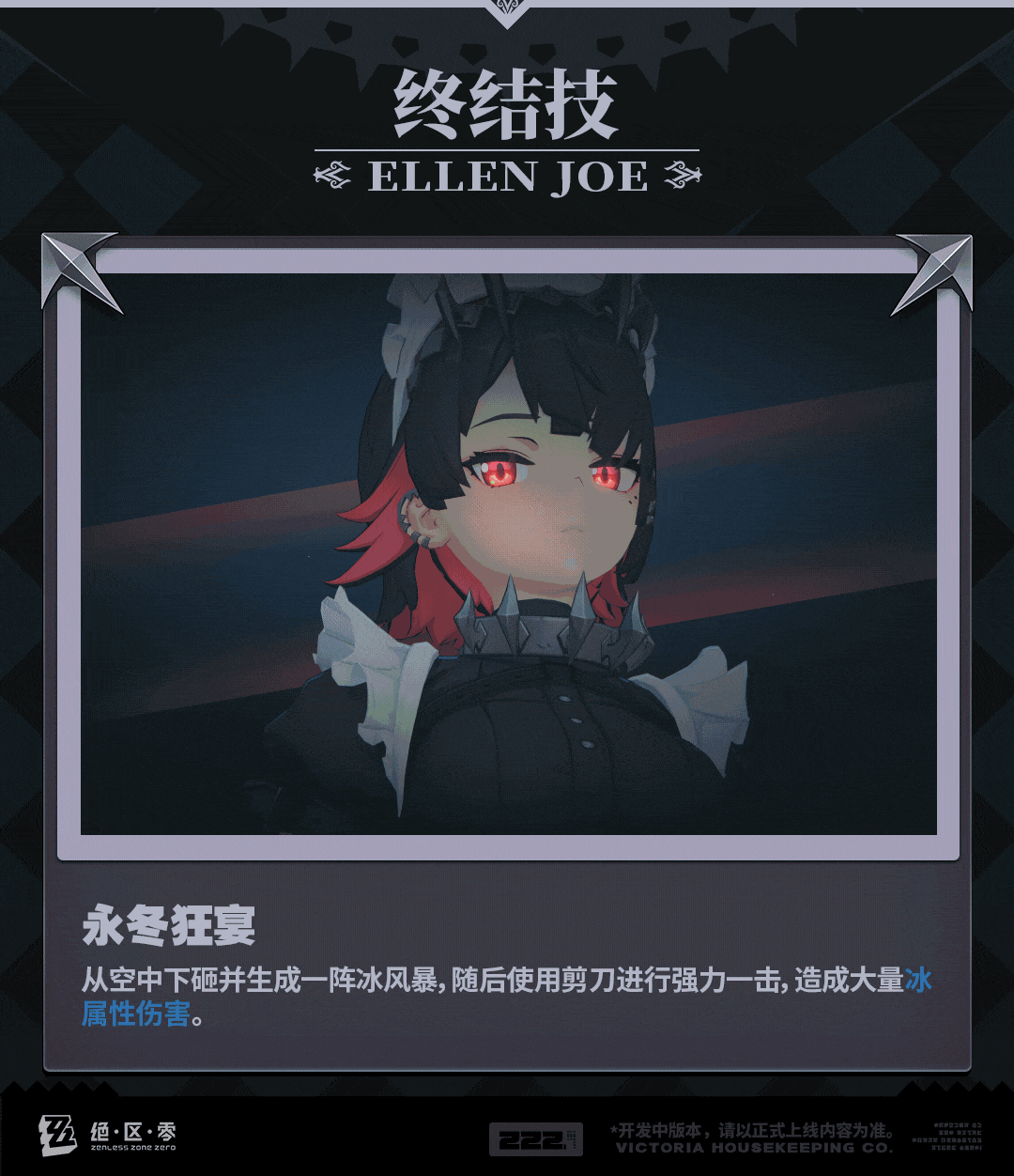 艾莲·乔的核心机制是通过冲刺攻击等方式积攒“急冻充能”点数,以此进行附魔普攻,配合特殊技、连携技、终结技打出高额伤害。