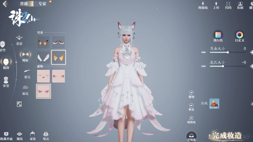 无论是兽耳还是兽尾,你都可以对其颜色、大小等进行自定义搭配。