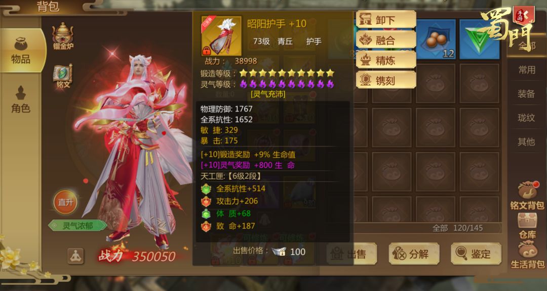 青丘暴击决定输出,所以装备属性里暴击是最重要的,再加上自带的暴击加成技能,能输出极高伤害。所以护腕护手护膝鞋子属性选敏暴,衣服腰带选敏体。如果想要更强的生存能力,护膝和鞋子可选敏体。