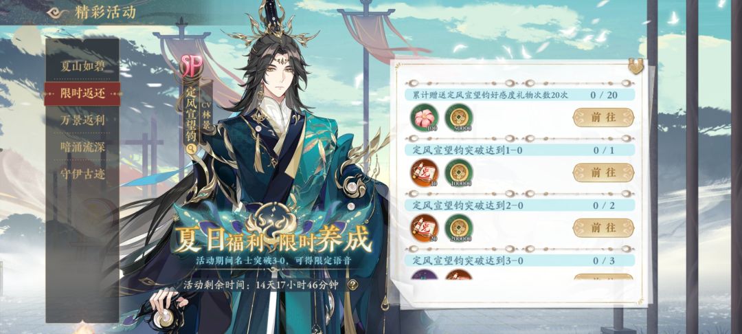新SP卡定风宣望钧,新的主线剧情矢之同袍等你解锁!还有超多暑期福利等你来拿!