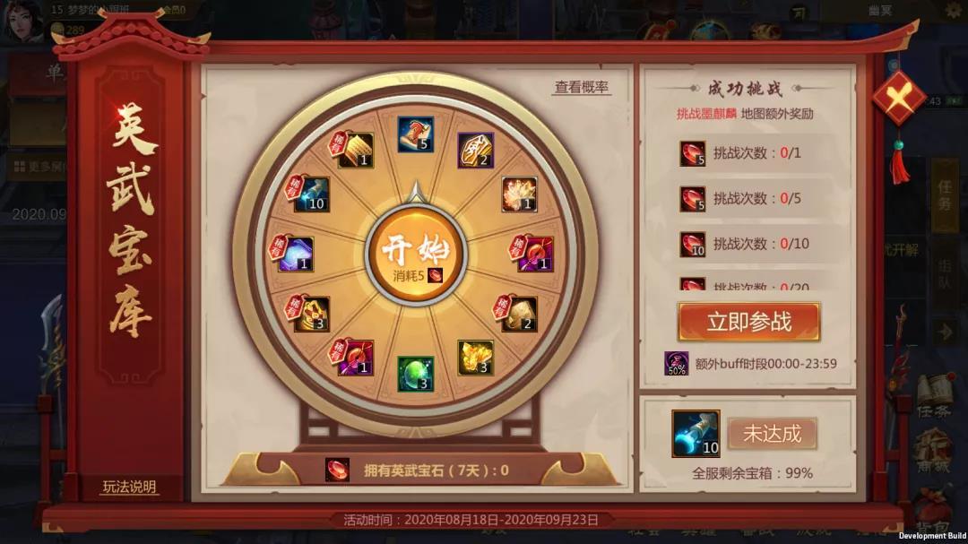 2.消耗英武宝石参与抽奖,直到奖励全部被抽完为止。