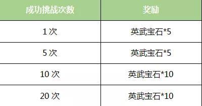 成功挑战【挑战墨麒麟】所能获得的额外奖励如下,一共30枚英武宝石免费送。