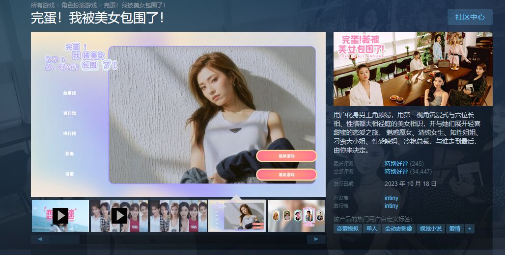 如果提到近两年爆火的游戏类型,真人互动影像游戏一定是个绕不过去的名字。仅仅是去年10月的《完蛋!我被美女包围了!》,就以一己之力创造了国产电子史上的奇迹,2023年12月,该游戏获得2023年Steam大奖“杰出剧情游戏奖”的提名。销量更是排到了2023国产游戏第二名,取得了190万销量的好成绩。