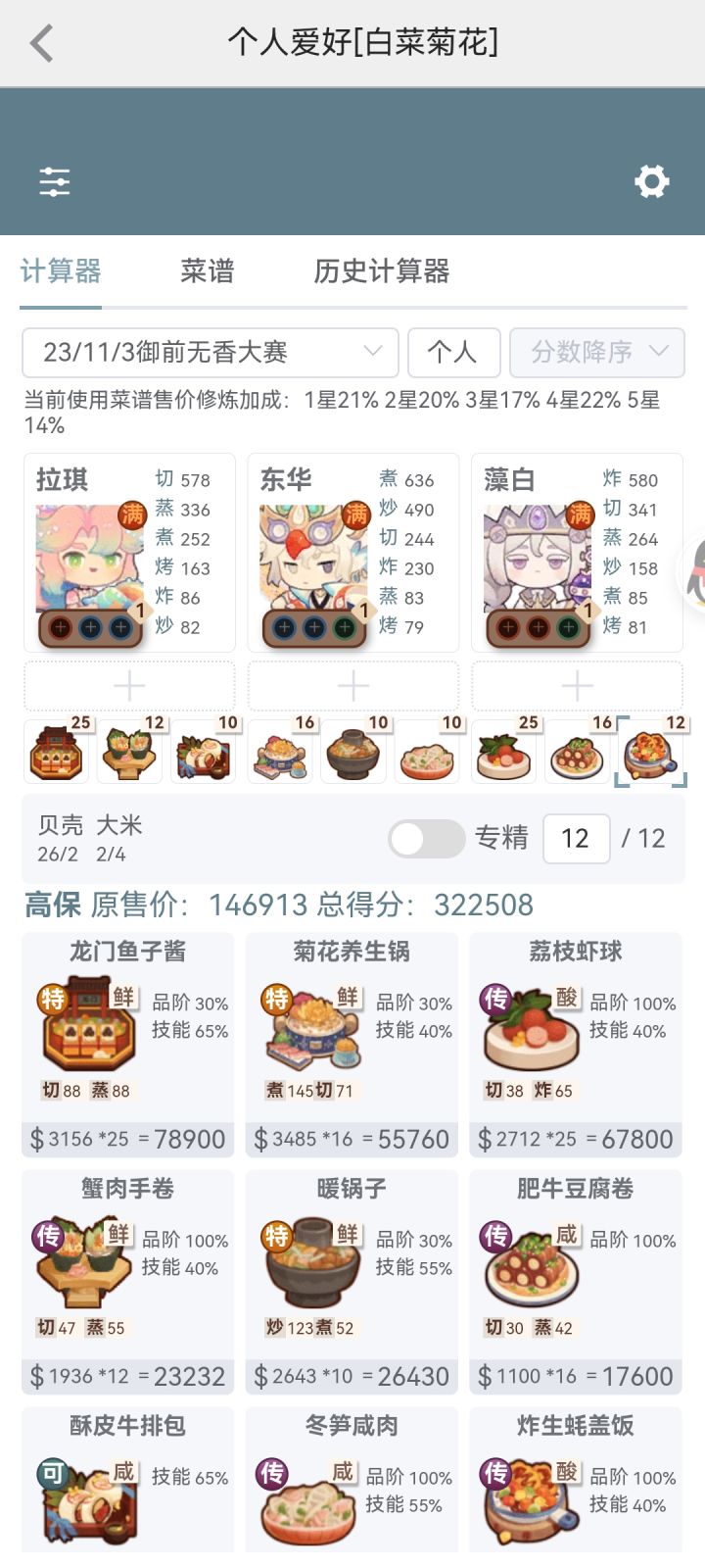 苏妲己蒸煮,煮切起手即可,这两个比较丰富,切煮乐乐妹,小卧龙,黑柏,,蒸煮就唐三三,句芒,姬玉绿绿。蒸切拉琪,普洛妮。