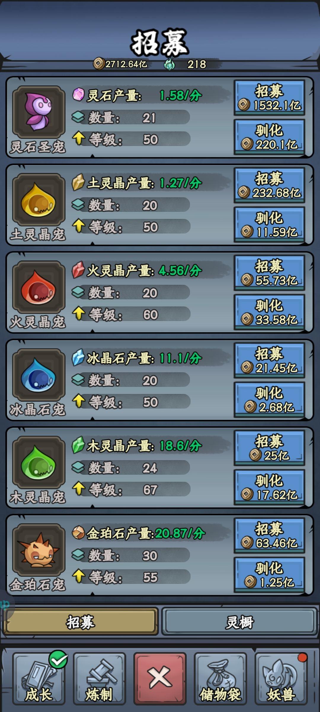 本玩法简单,通过招募和驯化灵宠,提高收益。