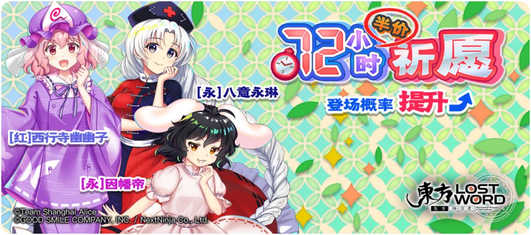祈愿概率UP角色:[红]西行寺幽幽子、[永]因幡帝、[永]八意永琳