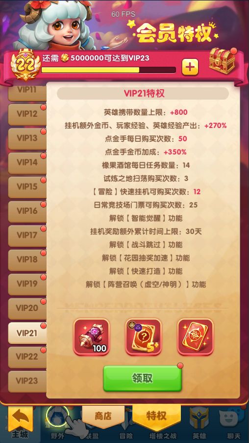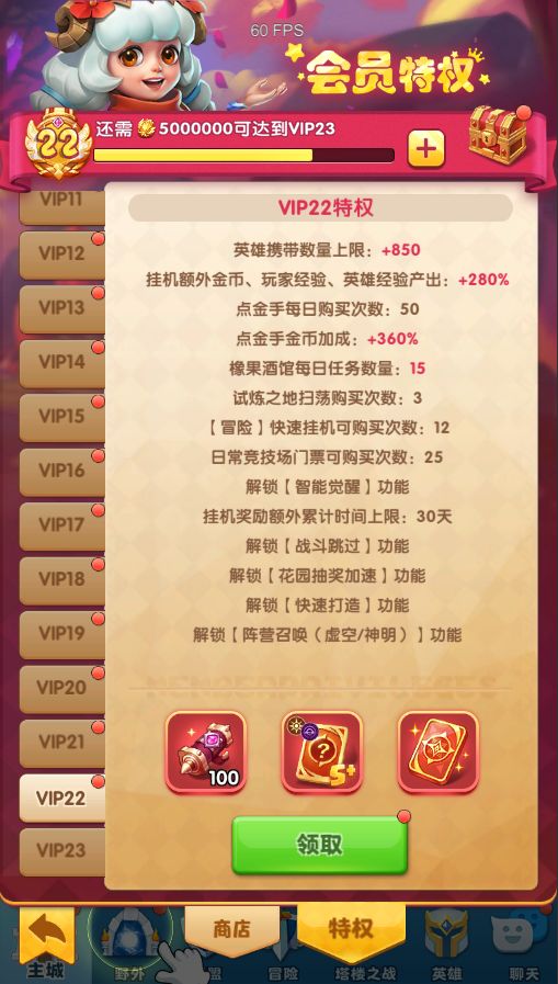 为了提升旅行者们的游戏体验,新增三档VIP等级,达到相应VIP等级的旅行者可以领取一份超值奖励!并且享受更丰富的特权~
