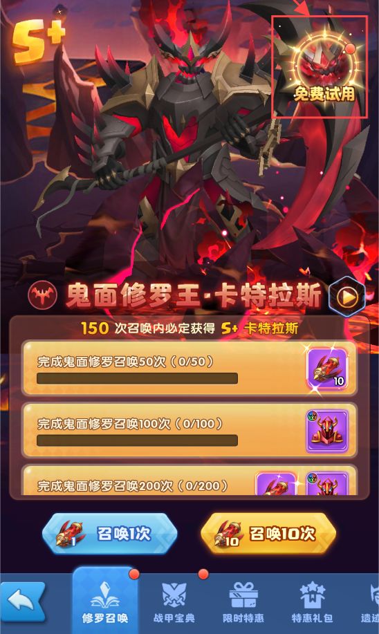 7、试用英雄将在部分玩法内开放试用,部分玩法将有每日试用次数上限;试用英雄出战一次并胜利,即为消耗1次试用次数。
