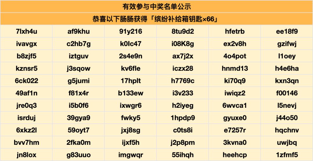 开奖啦!恭喜肠肠获得奖励~缤纷补给箱奖励将会在14个工作日内发放到邮箱,请注意查收!