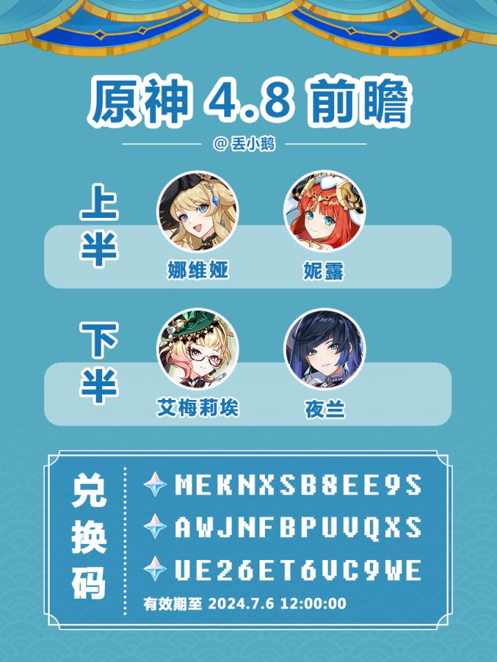 丢小鹅为你送上4.8前瞻兑换码~