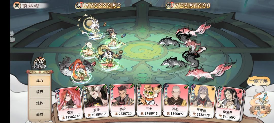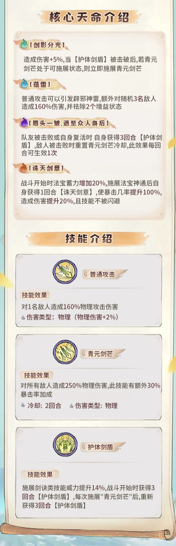 由于我推荐的是木系,法宝带2阶的叶或3阶的角与藤,2阶的叶可以配合道兵与天命快速清除对手buff。3阶角可以打出高额伤害,但蓄力值1000且要蓄力一回合,3阶藤可以偷buff,进一步提升自己。