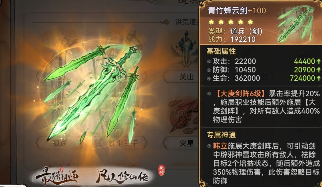 韩立与他的道兵青竹锋云剑绑定,各位祖师想养成韩立必须购买此道兵。