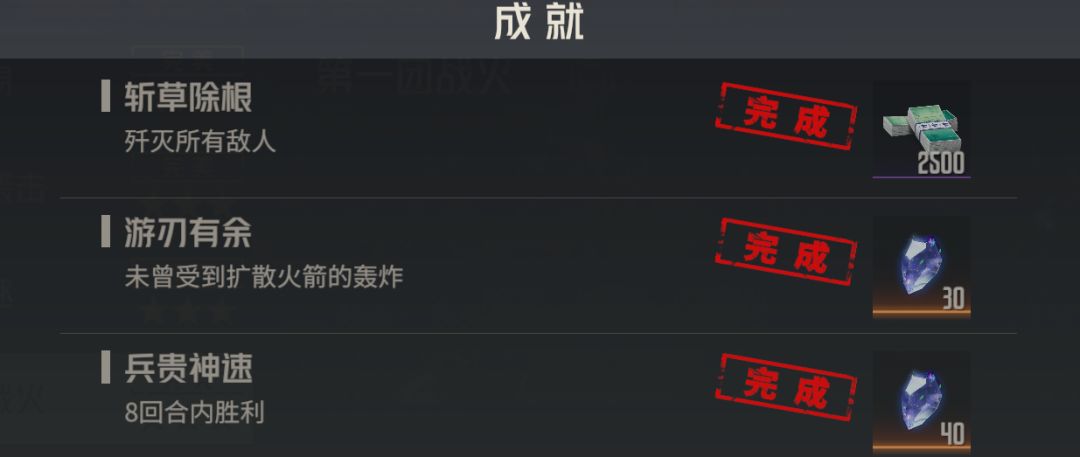 斩草除根:要求消灭所有敌人,想要完成此成就需要多留意场上敌人的位置,避免漏掉个别敌人,很多人只关注5个指挥型机兵,而忽视了其他敌人,有可能会出现在未消灭其他所有敌人之前,就将指挥型机兵消灭,导致成就没能完成。