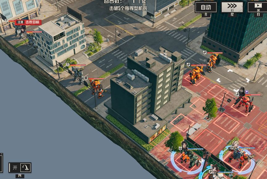 开局敌方会往左边位置投放扩散火箭,我方需要注意躲避火箭,同时清理路上敌人,往指挥型机兵处进军