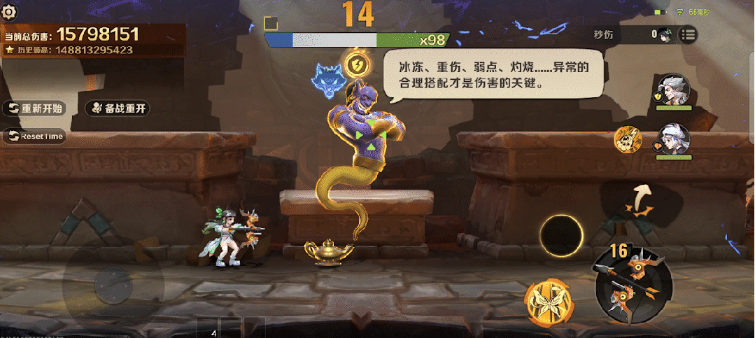 之后切换奥罗拉,利用战弓灼伤敌人,释放终结技开启极光领域恢复生命并提升伤害,接着释放技能生命契约召唤翠神庇护,重重增益叠加,切换苏尔进场!