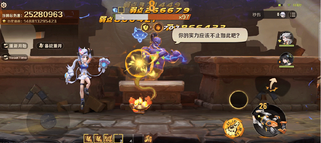 最终苏尔闪亮登场,使用电浆炮进行爆炸增伤,借助无敌喵喵拳强化普攻,再开启喵喵萌主领域强化武器并持续伤害敌人,多重施法,幸运叠加,于漫天萌意中倾泻火力,持续增伤,输出爆表!