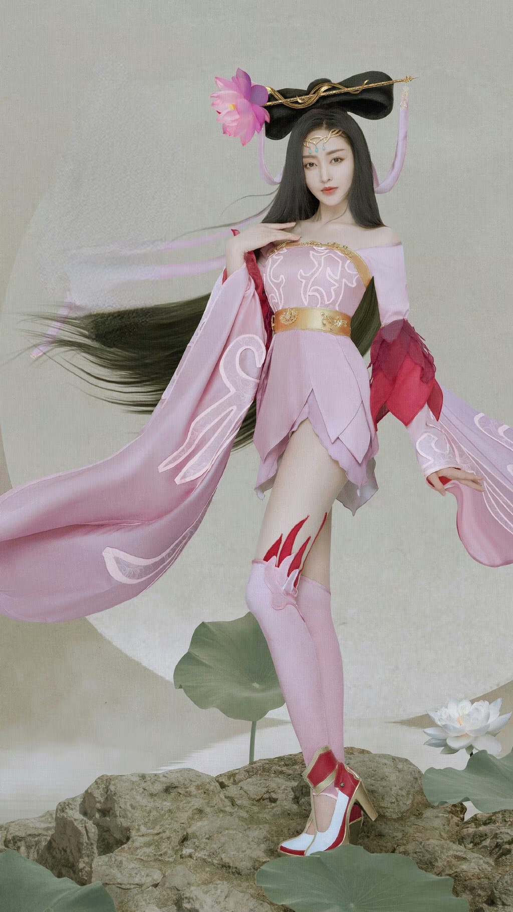 当然,除了张天爱COS过貂蝉之外,古力娜扎前后COS过两次貂蝉,而且两次的造型都封神了。上图是古力娜扎COS的貂蝉的情人节皮肤,还摆出了那种妩媚的造型。能看到,古力娜扎的腿也太细了吧,而且造型也十分的还原,并且,身边的粉红色的花瓣,也好有氛围感啊,很多宅男还把这个系列的作品,设置成了壁纸,没事的时候已经欣赏一下呢。