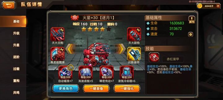火星:4星,没重构,主炮解限20,副炮解限10,共鸣伤害增加35,伤害603469517
