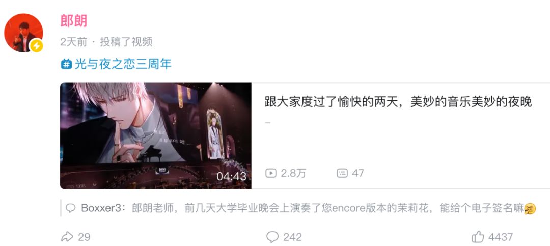 这场音乐会所庆祝的,绝不仅仅是《光与夜之恋》的三周年,而是《光与夜之恋》与玩家共同走过的三周年。