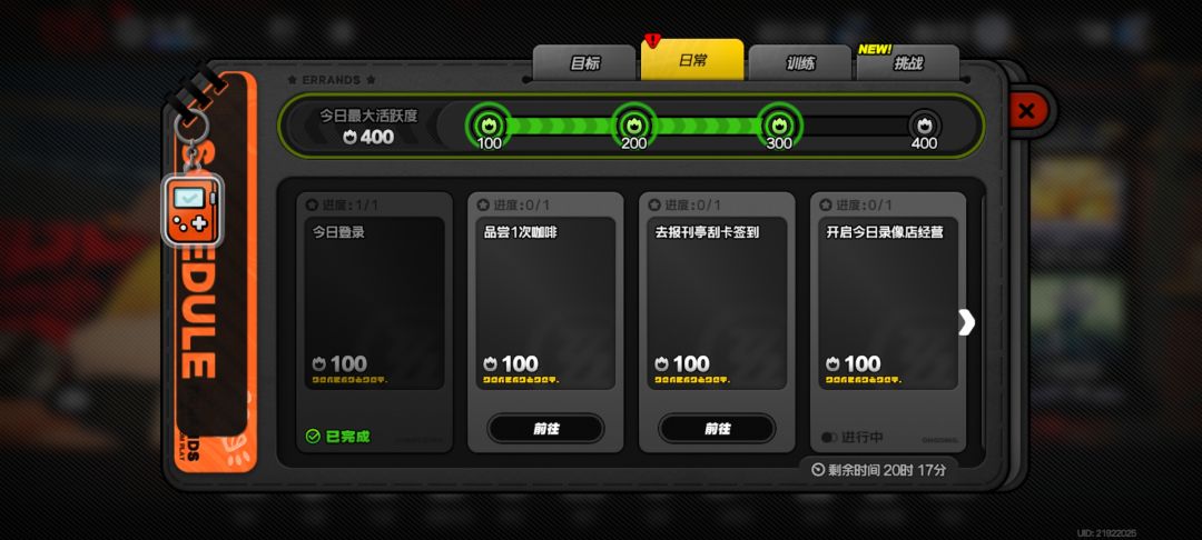 像像刮卡啊、喝咖啡、今日登录、开启录像店经营这些基本固定,