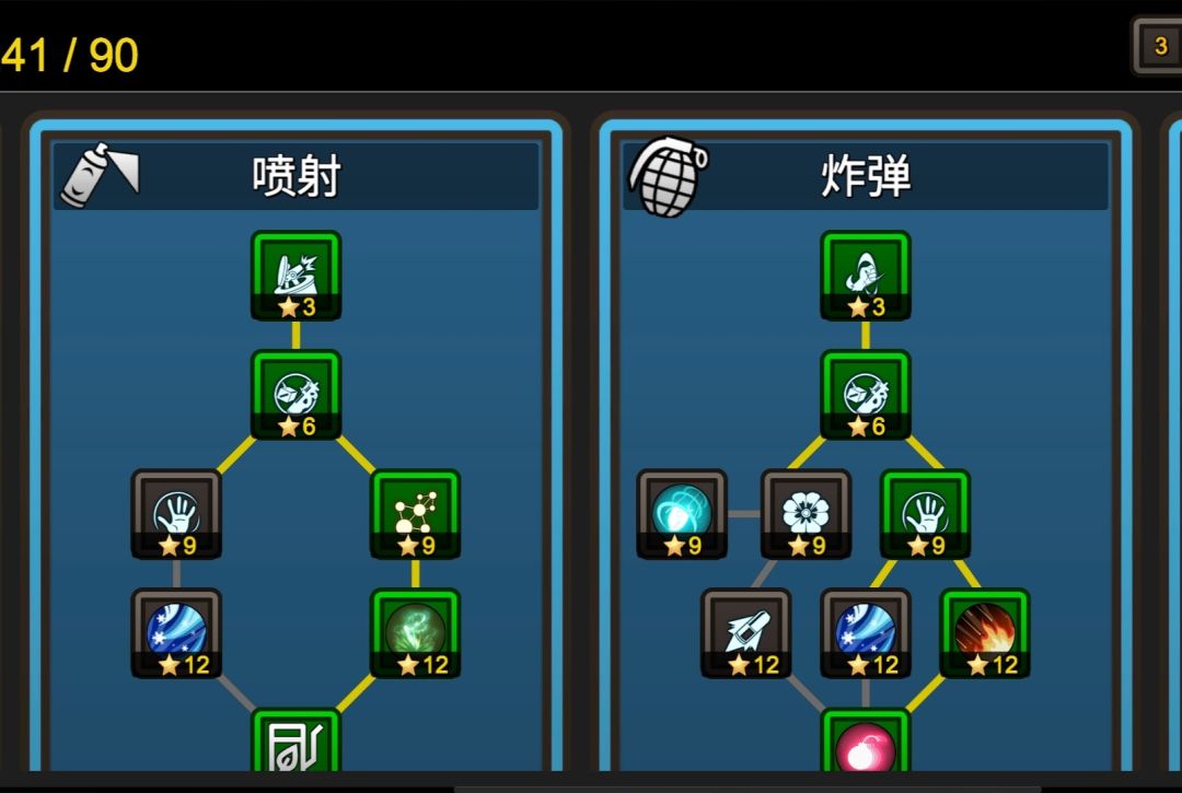 第一个,火烧油,最低要求,能使用炸,喷两种防御塔,且星不低于90,这是加星图