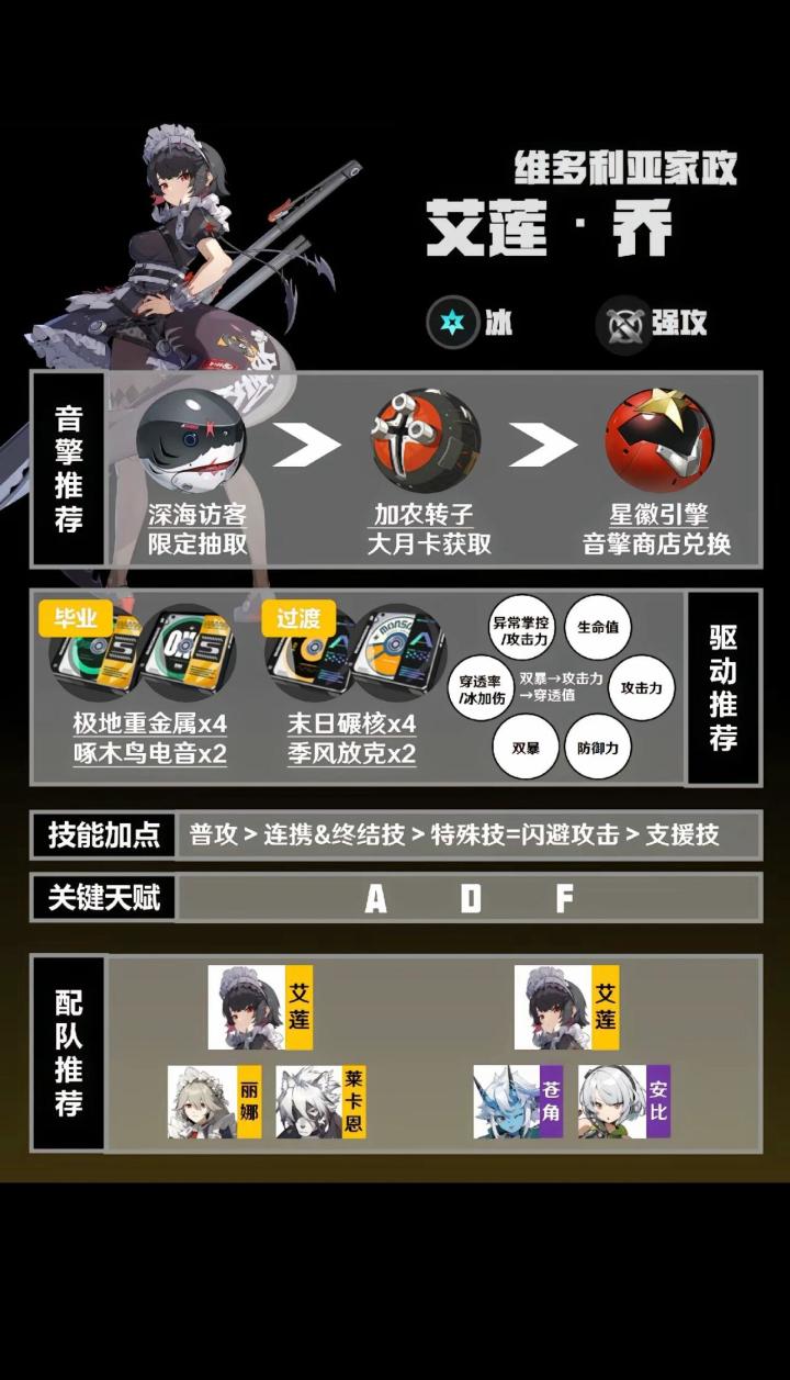 1、卡池抽取规划 常驻池—6个S角色 分别为冯·莱卡恩 (狼叔)、格莉丝、德丽娜、珂蕾妲、11号、猫宫又奈 手池在常驻池里——前50抽(8折40抽)即可抽到保底 300抽可自选1位常驻S级角色 常驻频段只推荐用原装母 抽取,不要使用菲林 UP池:艾莲·乔(鲨鱼妹)池子日 间:7/04-7/24 独家频段(UP池)需用 加密母带,菲材 议使用在此