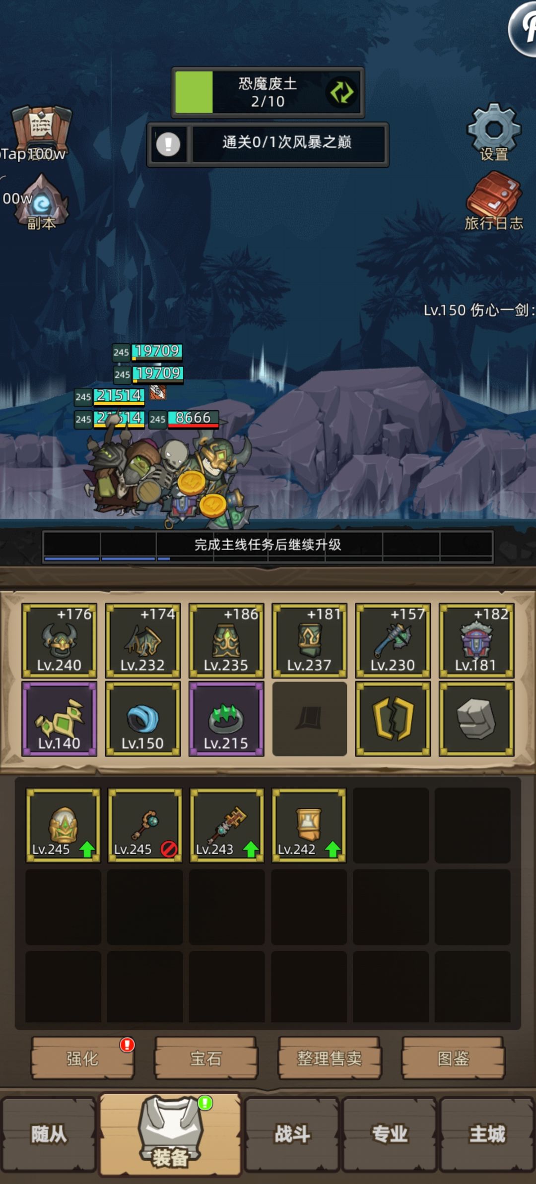 一个礼拜了。还是卡在245关风暴之巅,求大佬教育怎么过,或者如何提升!装备该选哪些!跪谢了!!!不想退坑啊!