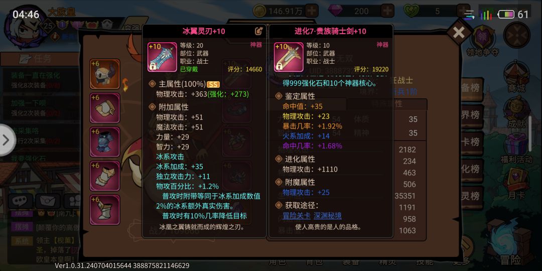 把武器强化+10 完美品阶 鉴定一下后带上继续推