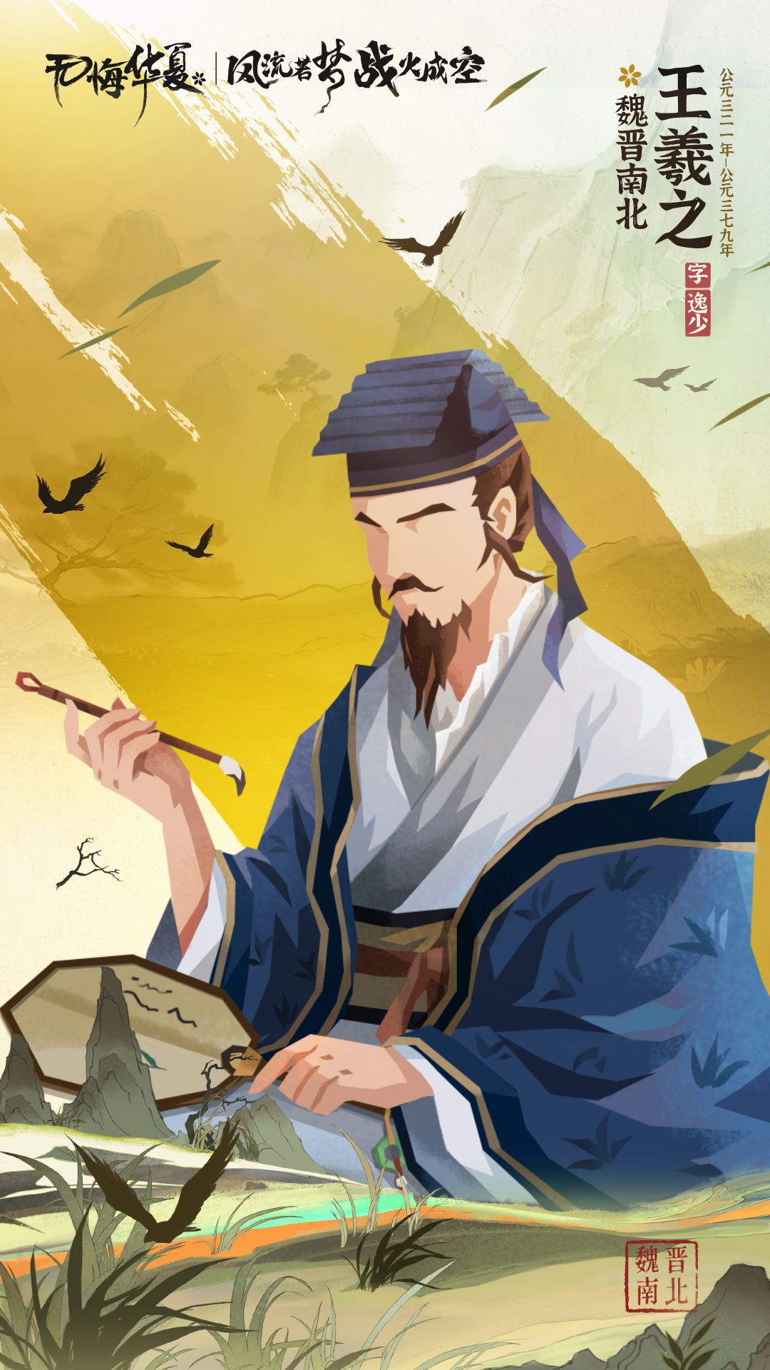 东晋著名大臣,字逸少,文学家,书法家,出自琅琊王氏,名臣王导之侄,后世尊为“书圣”。