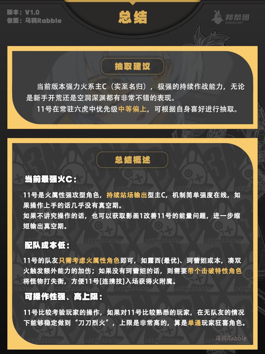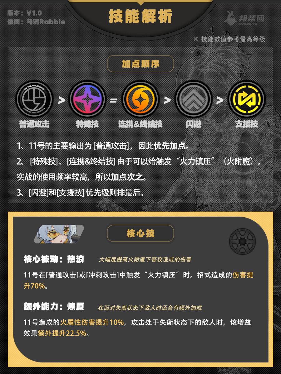 本期给大家带来的是绝区零1.0公测版本「11号」一图流角色攻略,从音擎/驱动推荐、意象影画、配队思路、技能机制等几个方面进行讲解,帮助大家更好地了解11号到底该怎么玩。