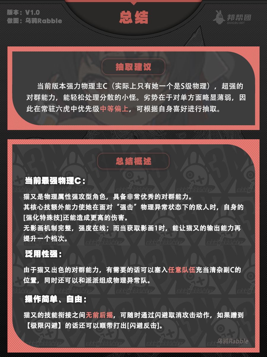 【1.0攻略征集】猫又角色攻略一图流