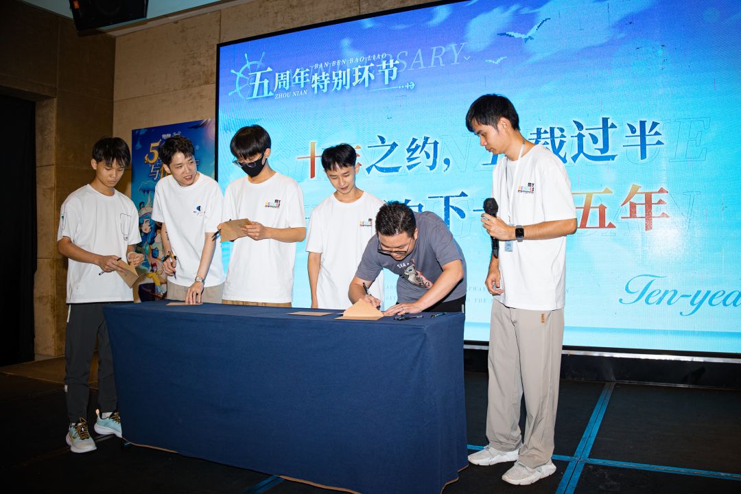 五职职业代表上台,和制作人一起签下十年之约的约定书
