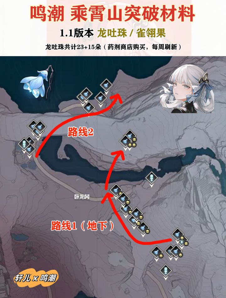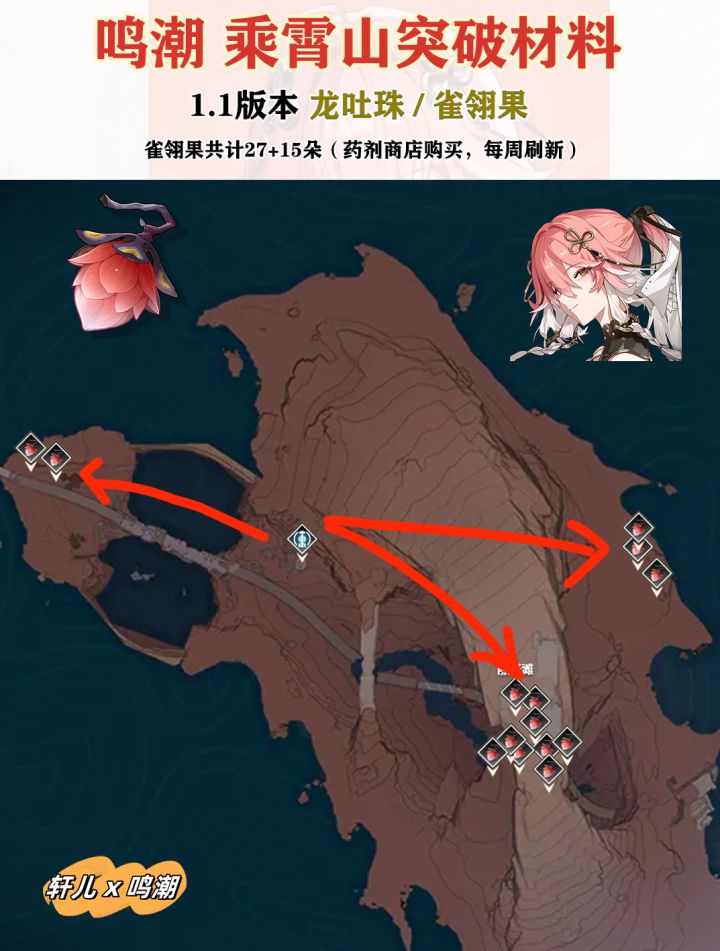 今汐突破材料龙吐珠采集路线 / 长离突破材料雀翎果采集路线