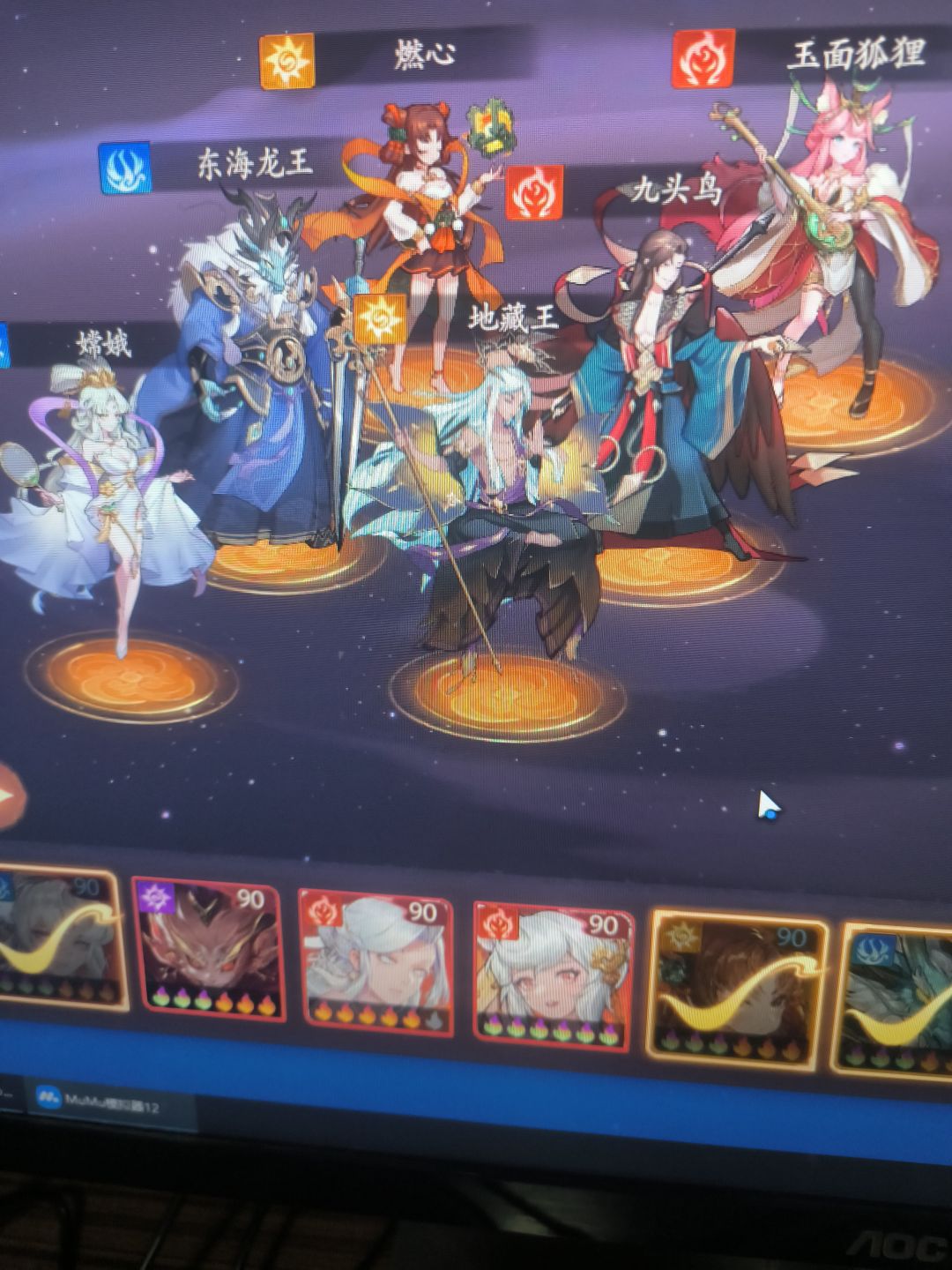 我这边我这边pk顺序是,狐狸,地藏,九头鸟,嫦娥加燃心,九头鸟的作用是弥补地藏没有降到防的角色,不俗的130%排伤作为伤害补充是很足的,接嫦娥的群伤,最后再接燃心,四套群伤下去,后排基本是清场状态