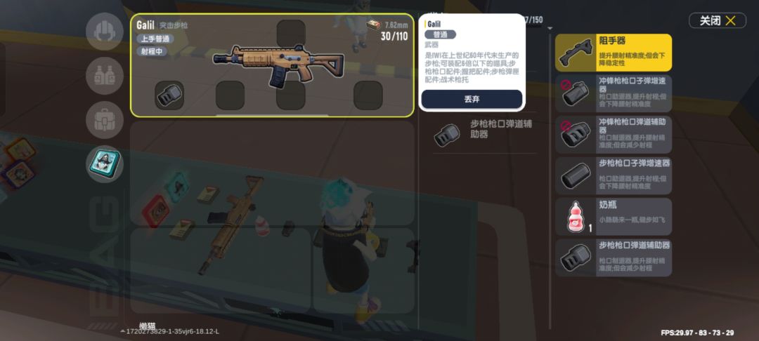 新增加了一种枪 伤害达爆头88 身子44 这个枪叫做Galil 新增加的配件比如:阻手器,冲锋枪枪口增速器,冲锋枪枪口辅助器,步枪枪口增速器,步枪枪口辅助器等 这些新的配件都能帮助到各位肠民的击中率,特别是对于新手来说上手易懂 简单 👉[奶瓶]它的功效呢就是 持有若后变成小肠肠 点击小奶瓶 回复三十体力 四秒内增加移速 给离得远的队