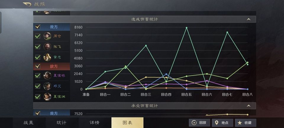 他用周仓、张飞和黄忠组成的变种忠义弓,获得了一个小两连斩,其实两场的质量都不赖,只不过最吸引我的还是对决夏侯惇、邓艾和满红夏侯渊的那一场。白板黄忠在星级大幅落后满红夏侯渊的情况下,是如何获得胜利的?功劳到底是他自己多一些,还是队友的占比更大?接下来,就让我们逐一观摩。