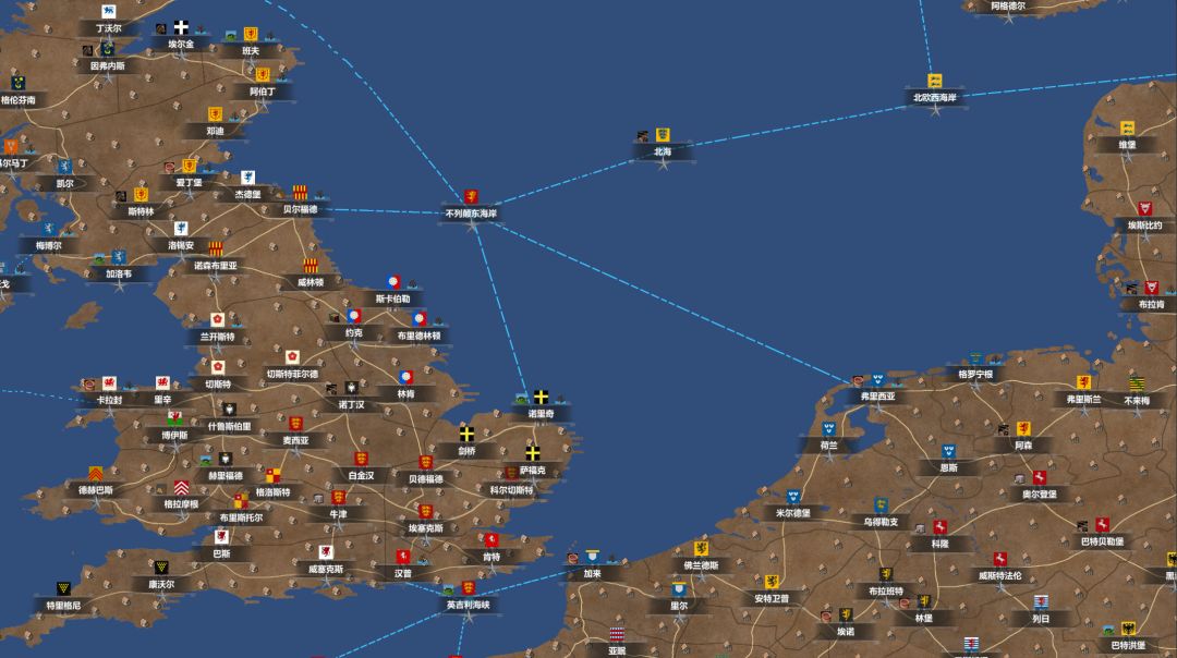有些海面会有蓝色的点,这就是制海点,他们也算做一个领地数据,通过制海点可以海上入侵,制海点会爆发海战,当没有任何战争对象时,如果一个海域里面有多个领主的战船,会概率性爆发摩擦甚至损失战船,每个制海点也都会有一个领主占领。制海点归属的国家会获得粮食和贸易税金加成。