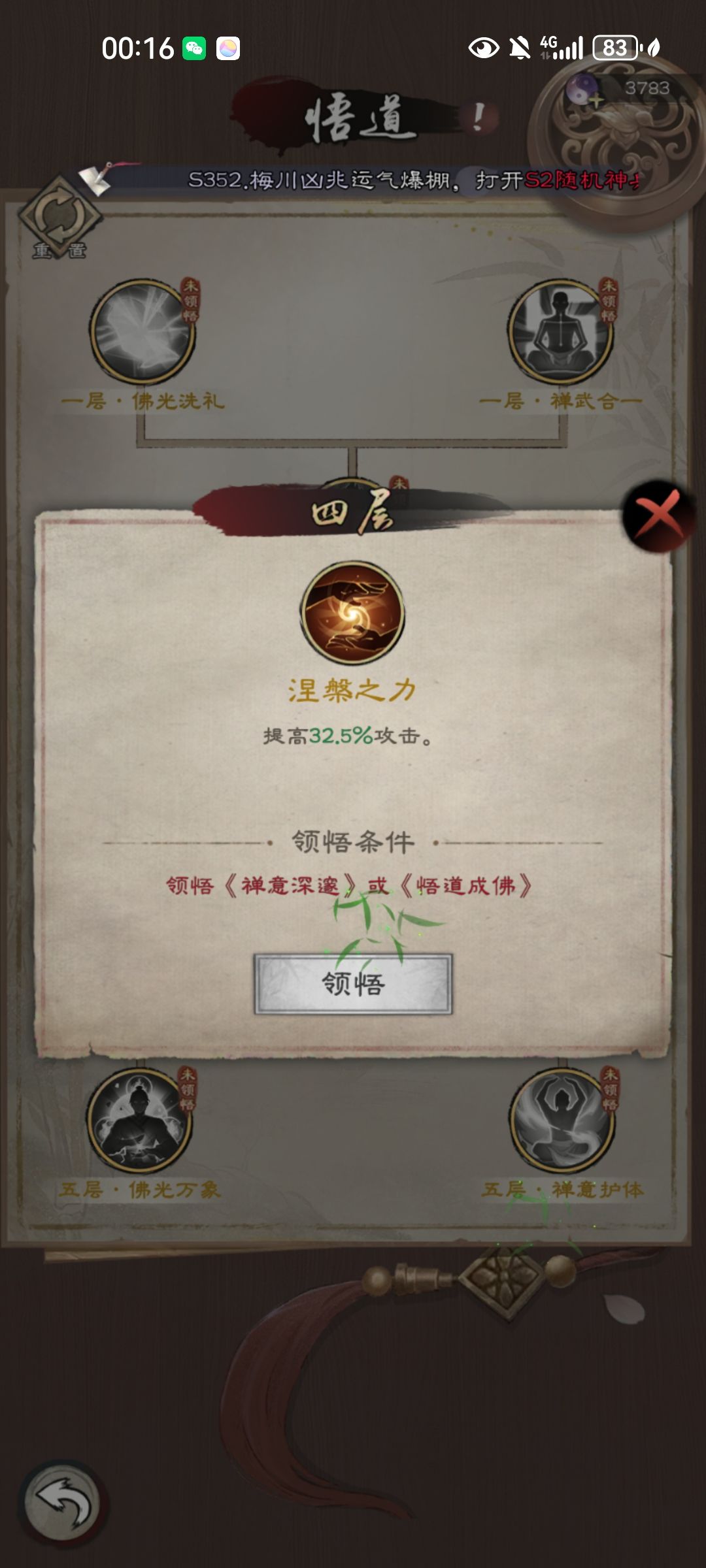 新鲜的神渡厄已到达战场,上周拿下。快来看看悟道具体内容吧。
