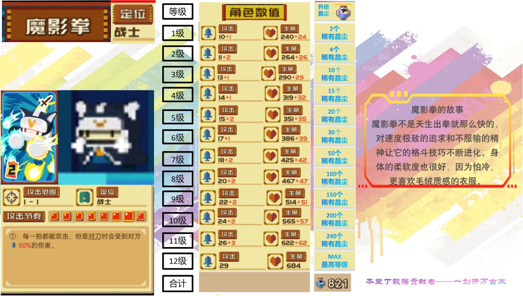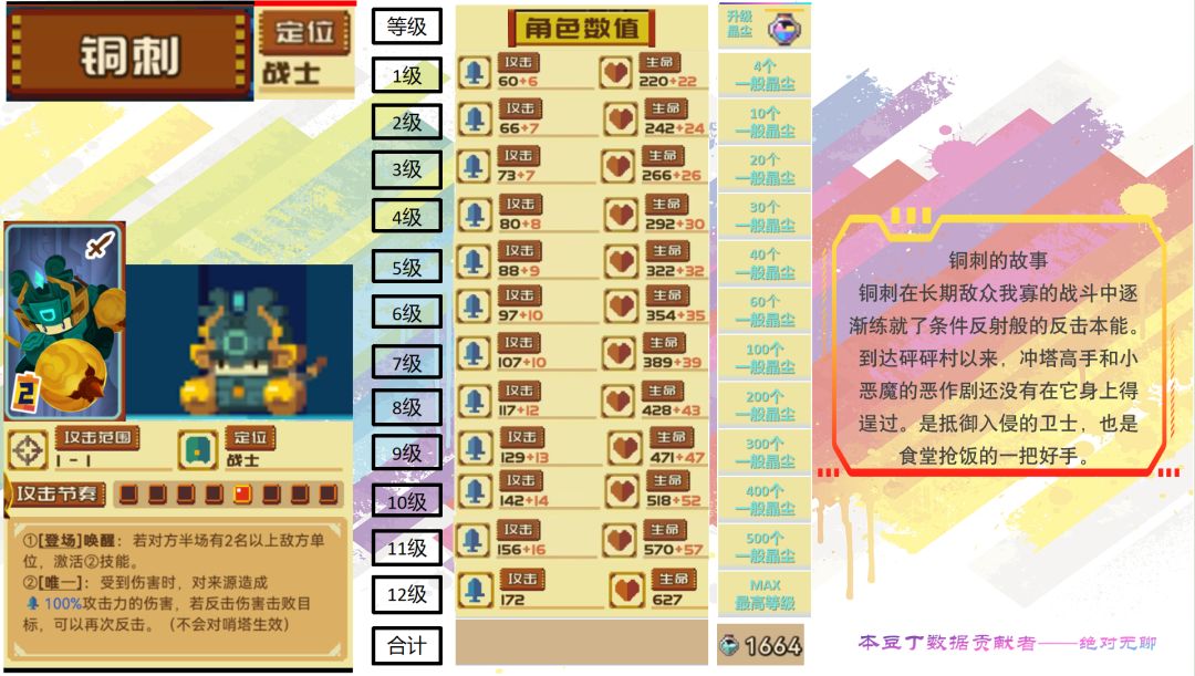 优点举例:比其他的近战豆丁手长1格,单次伤害也不低,可以穿透打塔