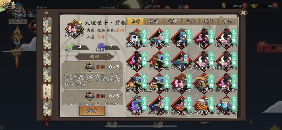 历经132天,终于入门了,头30天基本没玩,后来疫情期间太无聊了又捡起来了,在论坛等众大佬的帮助下,迅速上手,现在开始当条咸鱼啦!(翻遍我的符文,居然一个戏法都没!紫的都没有!)万万没想到我差的最后一个武侠居然是公孙!