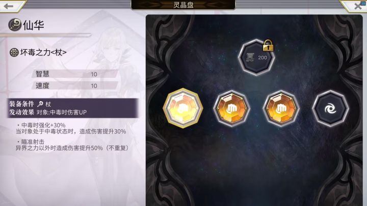 灵晶可以随意,只需要狙击 蔷薇 背水三种矿石,因为我狙击多,蔷薇和背水只有一个,所以把狙击装在高级毒痛上,把蔷薇和背水装在没有限制武器的中级毒痛(猫神祠堂巡礼获得)上了