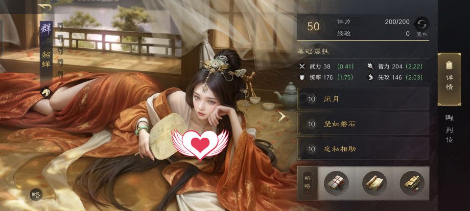 此战双方都是箕形阵,忠义弓那边自然是刘备顶在前排,而这边则是貂蝉。当前版本的三谋对于闭月的设定,实在是让所有男性武将在面对貂蝉的时候肌无力,加上坚如磐石和忘私相助,以及相怜小金书,是既把貂蝉的嘲讽回血兼顾到,又让吕布牢牢吃着破甲效应。