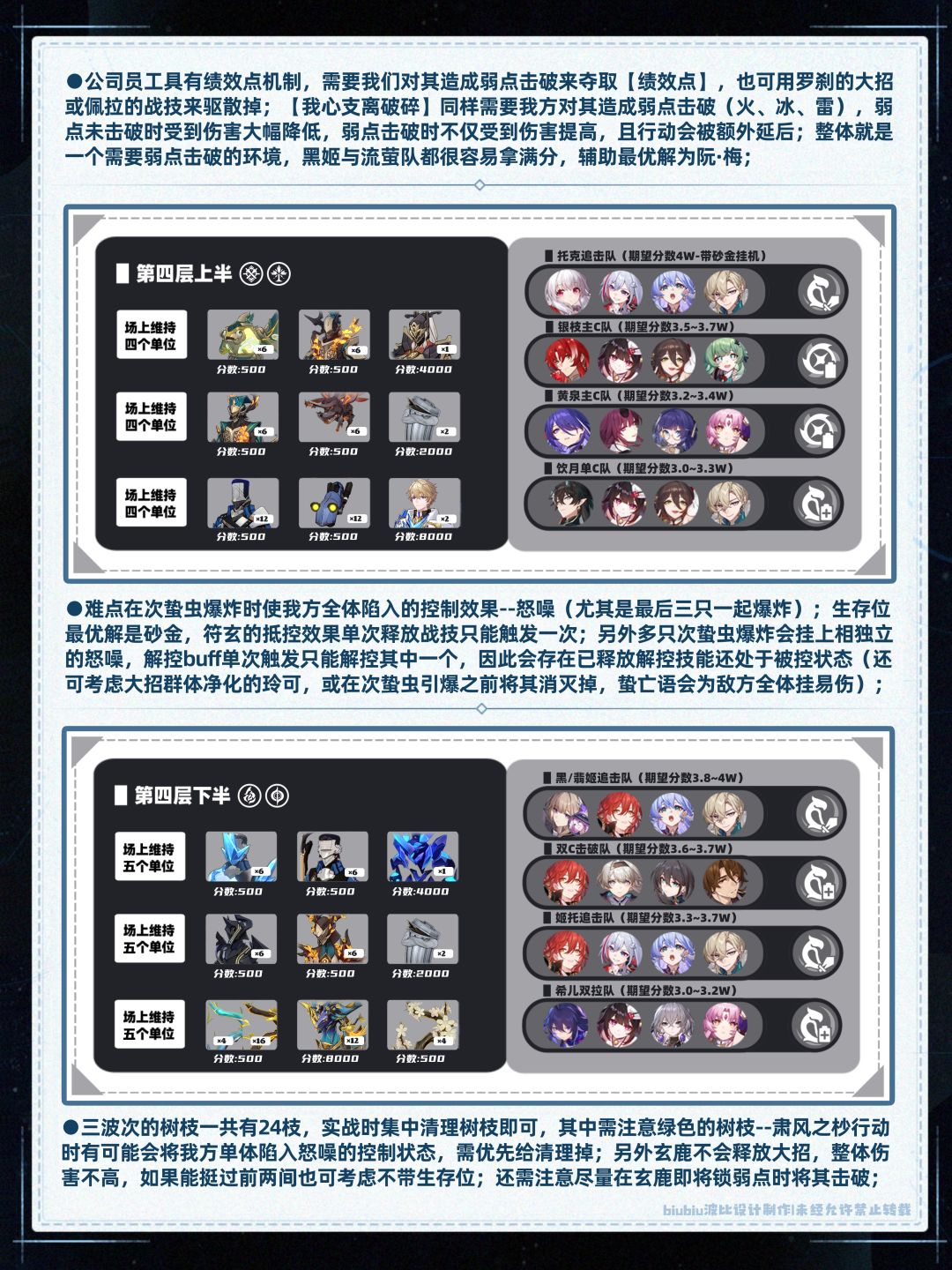 但同样是群功类追击的黑塔、姬子,与选择了合适buff后的银枝,本期也能从中获得不小的收益;相信已经练过的宝子很容易就能拿满奖励了;通过这几期多变的虚构及混沌环境,意在告知我们要及时拓展自身box宽度;那么这个即将上线的虚构特化角色—翡翠,是否需要抽取就值得仔细斟酌了;