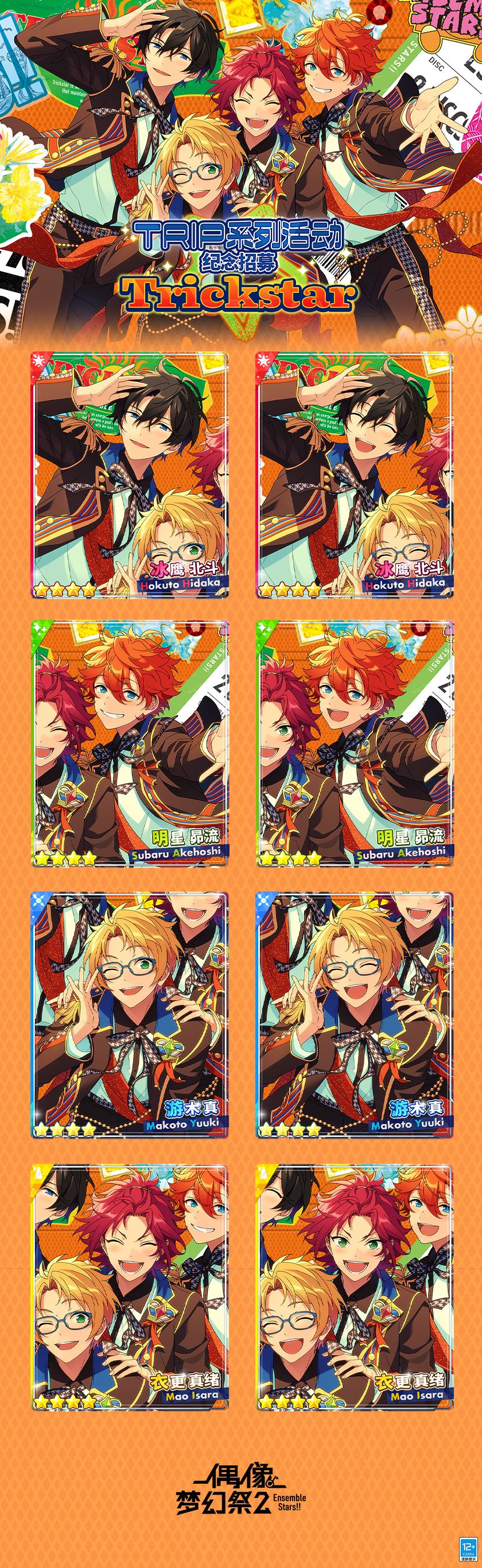 「TRIP系列活动纪念招募Trickstar」限定卡池内容如下: