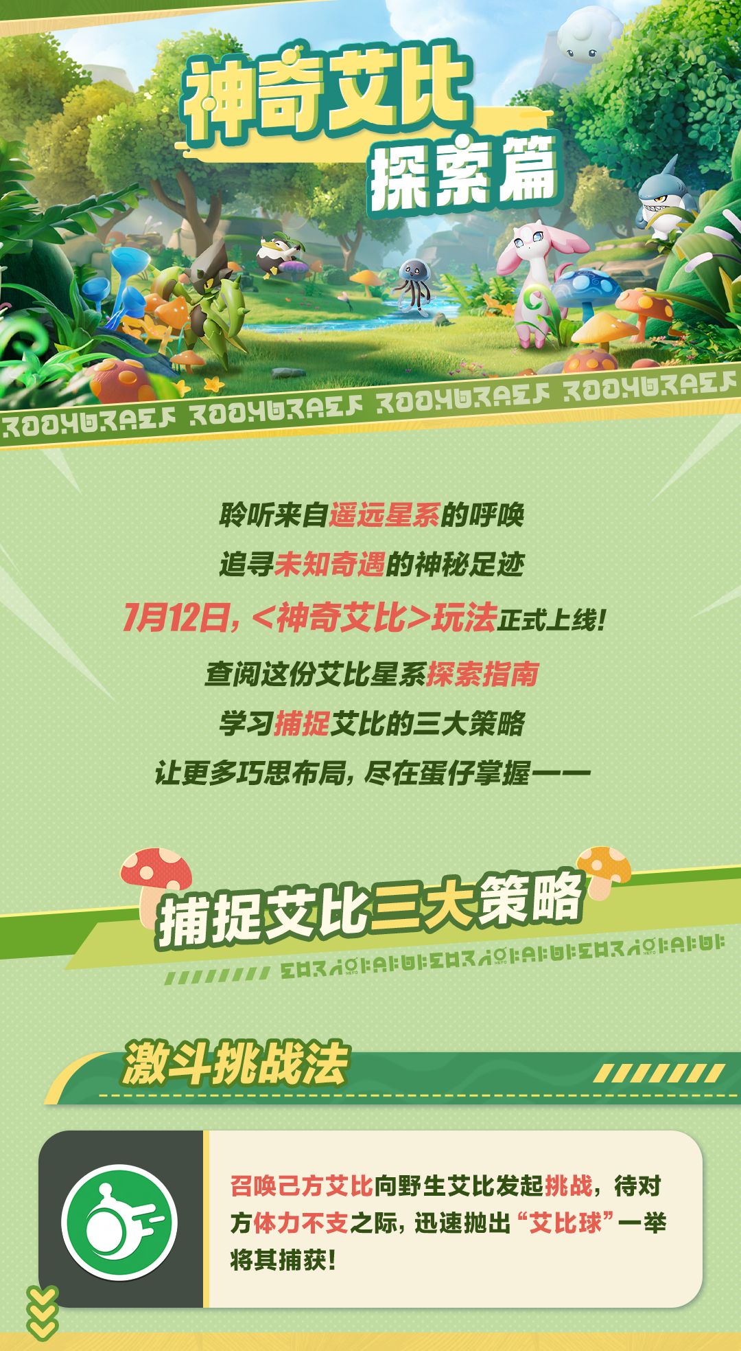 🌿7月12日,「神奇艾比」玩法正式上线!在艾比星系将可以捕捉艾比,不同种类的艾比生活在不同的区域,还可以在大陆上获得可以协助捕捉艾比的道具,喜欢这种帕鲁玩法的蛋仔们快来下载游戏,探索艾比大陆吧,这些萌萌的艾比真是太可爱啦ヾ(≧∪≦*)ノ〃