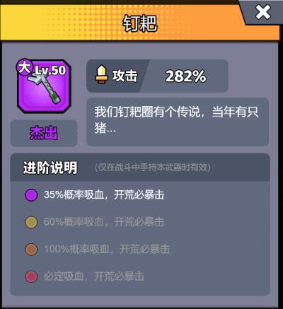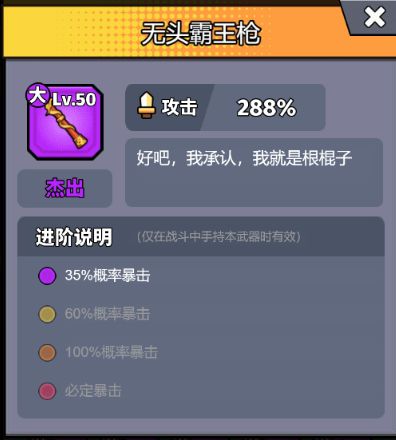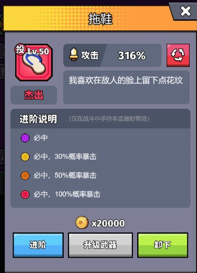 进阶后百分比暴击,并且必中,针对闪避流必要装备