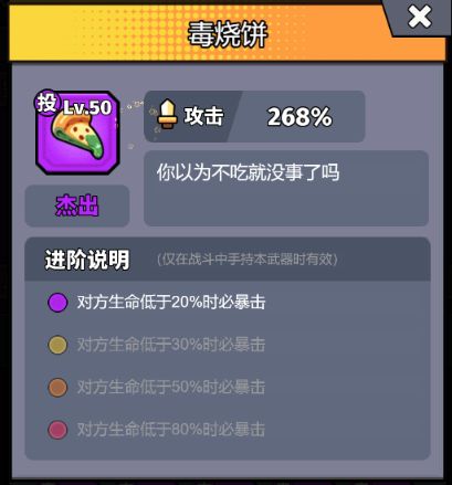 烧饼,建议放在武器栏后几位,因为有要求才能必暴击